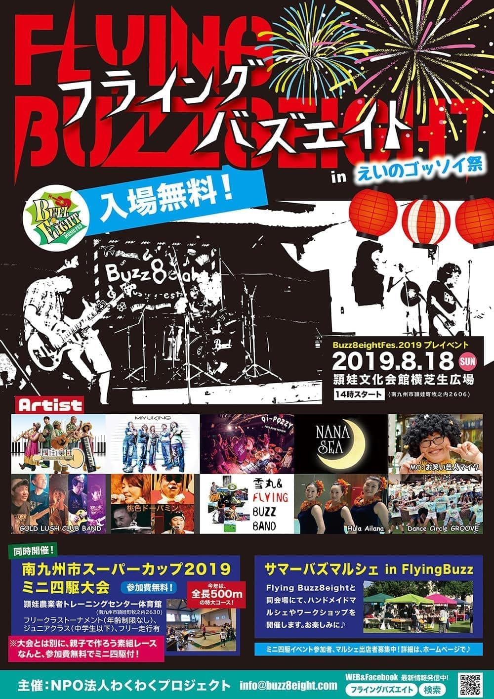 出張Buzz8eightFes in えいのゴッソイ祭 会場:頴娃文化会館横芝生広場 入場無料 【出演アーティスト】 風街楽団、MIYUKING、CHI-ZOU、KC SUCCESSION、酔2、EDGE、オキドキオンポ、DanceCircleGROOVE